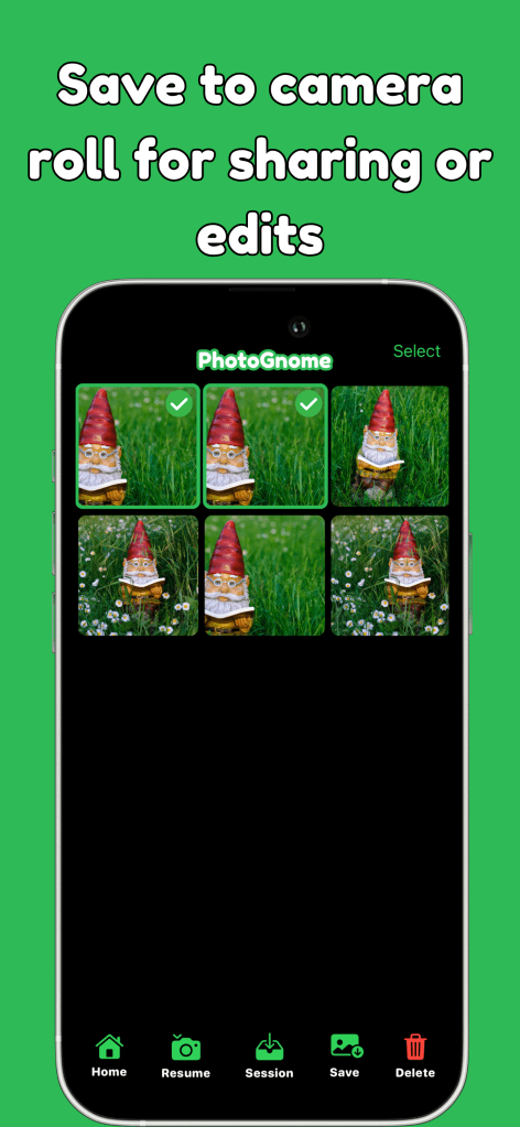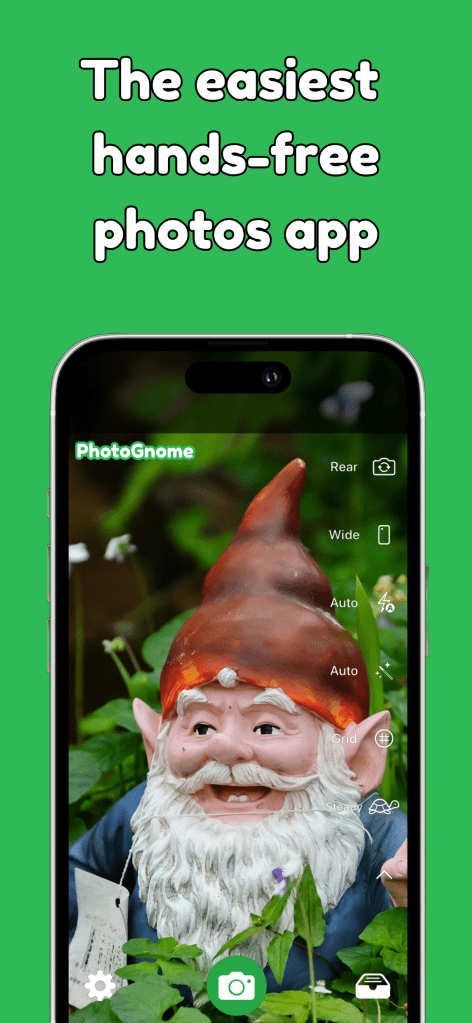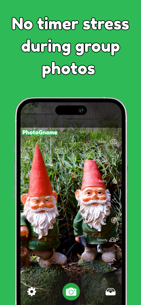PhotoGnome makes it easy to capture moments hands-free — no rushing, no timer stress, and no one stuck behind the camera. Whether you’re snapping group shots, self-portraits, or just having fun with friends, PhotoGnome is your personal photographer. Just place your phone on a surface or tripod, tap the shutter, and step into the frame.